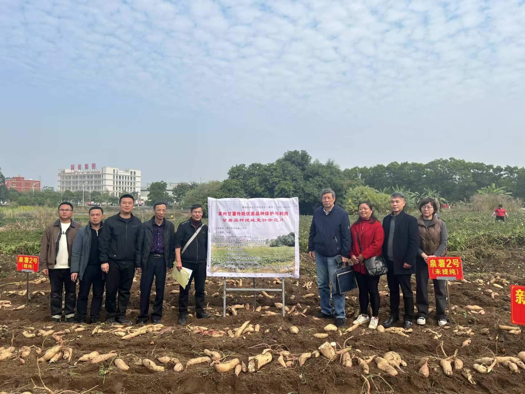 2024年12月27日,受福建省科技厅委托,泉州市科技局组织专家对泉州市农科所承担的省科技厅引导性项目“泉州甘薯传统优质品种保护与利用”(项目编号2021N0047)示范片进行现场测产。该示范片位于晋江市内坑镇上方村,种植提纯复壮后的新种花、泉薯2号、湖南白等3个品种,中间插植未提纯复壮的相同品种为对照。专家组在示范片现场随机抽取3个地点的测产结果:种植提纯复壮后的新种花、泉薯2号、湖南白三个品种亩产为3825.19kg、2330.12kg、3385.17kg,比未提纯复壮的增产22.25--35.72%。