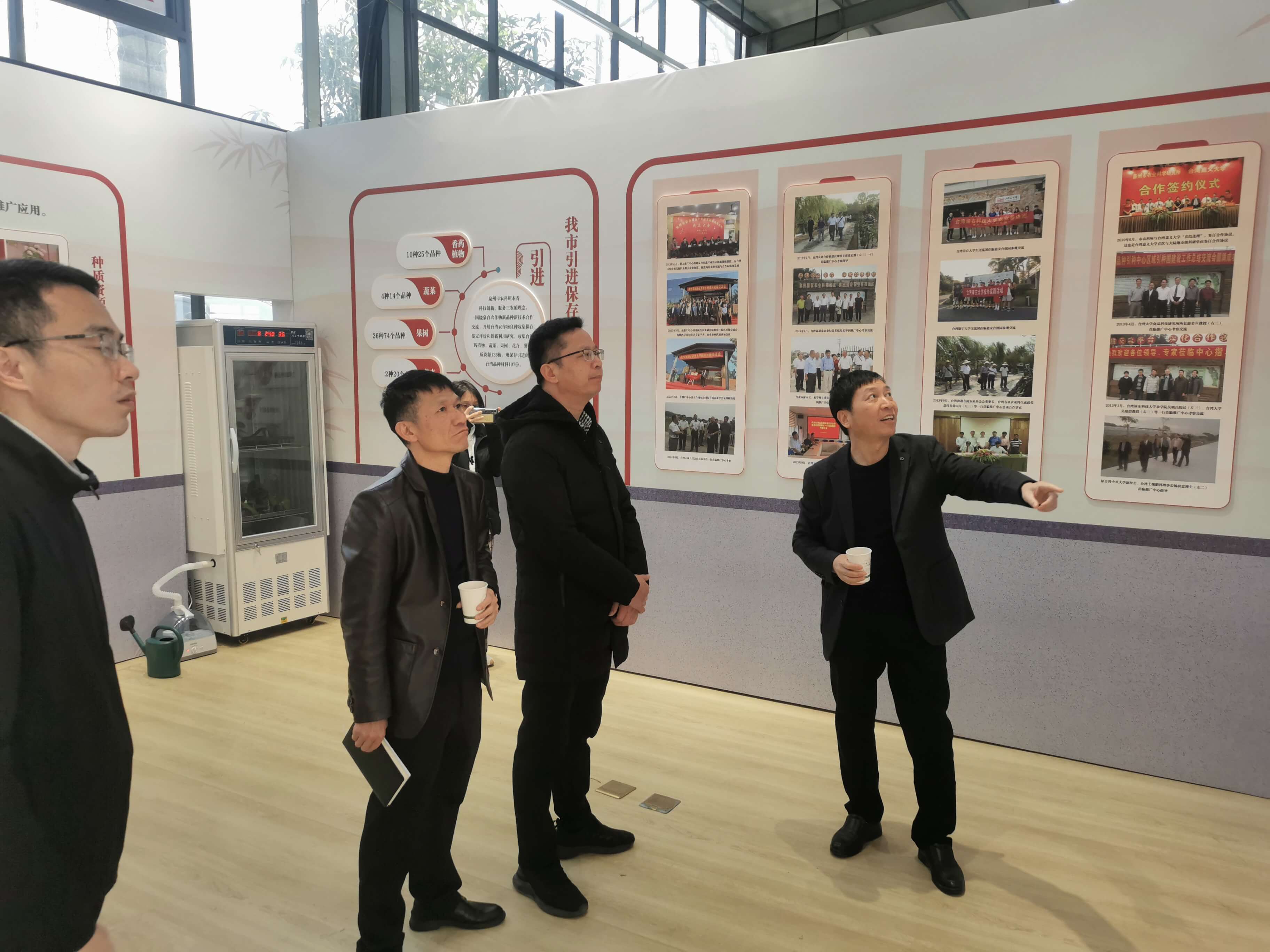 泉州市农科所相关领导现场详细介绍了近年来园区创新中心及对台交流工作推进情况与取得成效,随后带领人员参观了泉州市对台工作成果展厅,并一同考察入驻园区的泉州市丰泉农业发展有限公司和泉州台商投资区旭日生物科技有限公司两家花卉企业。考察结束后,陈辉华一行前往东方奇迹召开台商农业农村工作现场会,共同谋划2025年区农业农村工作的开展,希望市农科所发挥技术和人才优势,为台商区农业产业发展和乡村振兴更好地提供科技支撑。