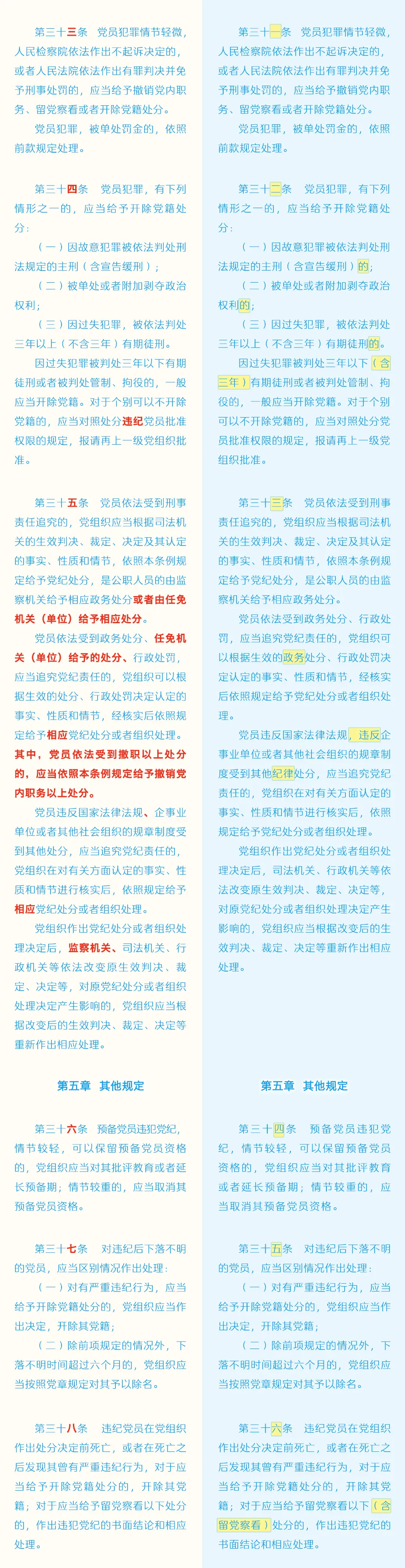 学条例 守党纪丨《中国共产党纪律处分条例》修订条文对照表
